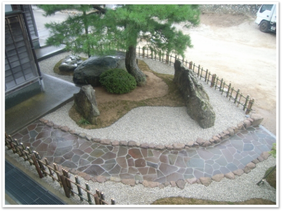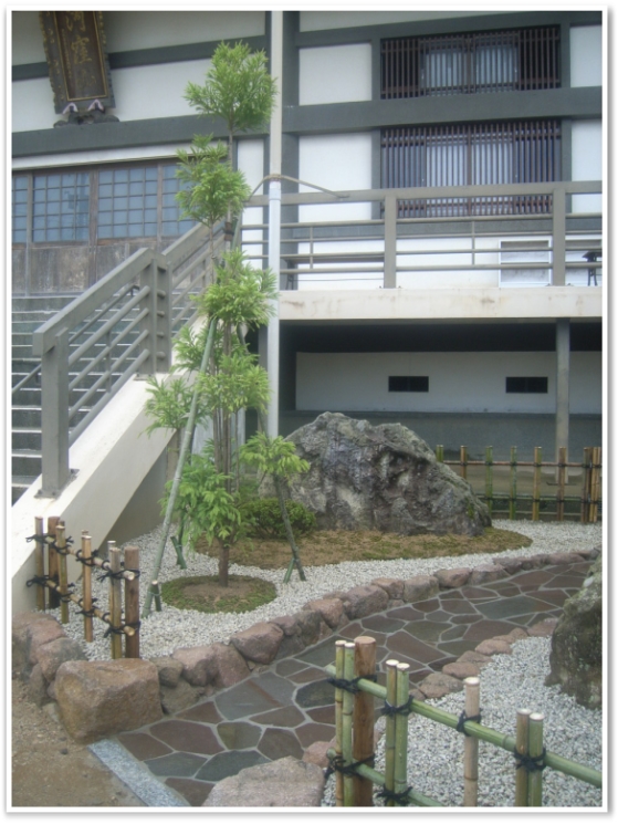 2020.06.01 施工事例 心和ます和風庭園 工事前 参拝客が受付まで行くには、建物に沿って軒先を行くルートしかありませんでしたが、本堂の階段の横からも行けるアプローチを新たに作りたいとご依頼頂きました。 工事後 ~歴史ある物はそのままに、新たな表情の和風庭園へ~ 立派な松や大きな景石など昔からある物はそのまま活かし、移設は必要最小限に。園路は自然石で縁をして鉄平石を乱形石貼りにし、白川砂利敷きの中にしっとりとした杉苔。石と緑が組み合わさり、心和む和風庭園が出来ました。